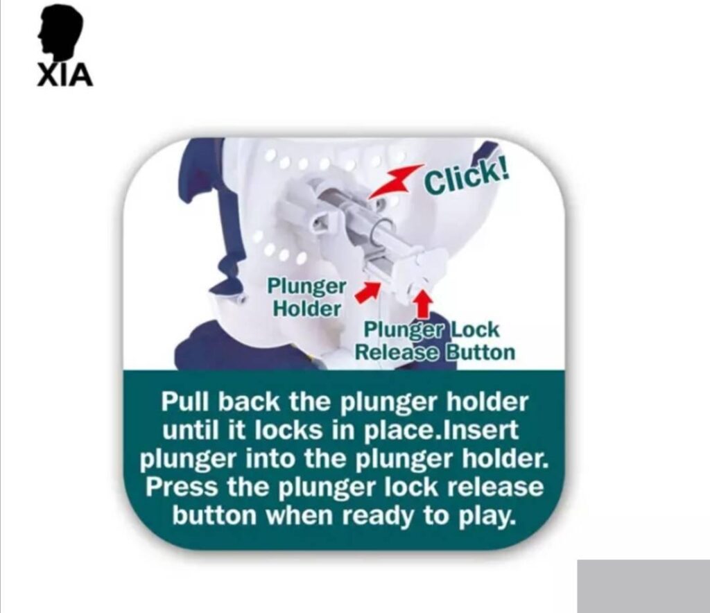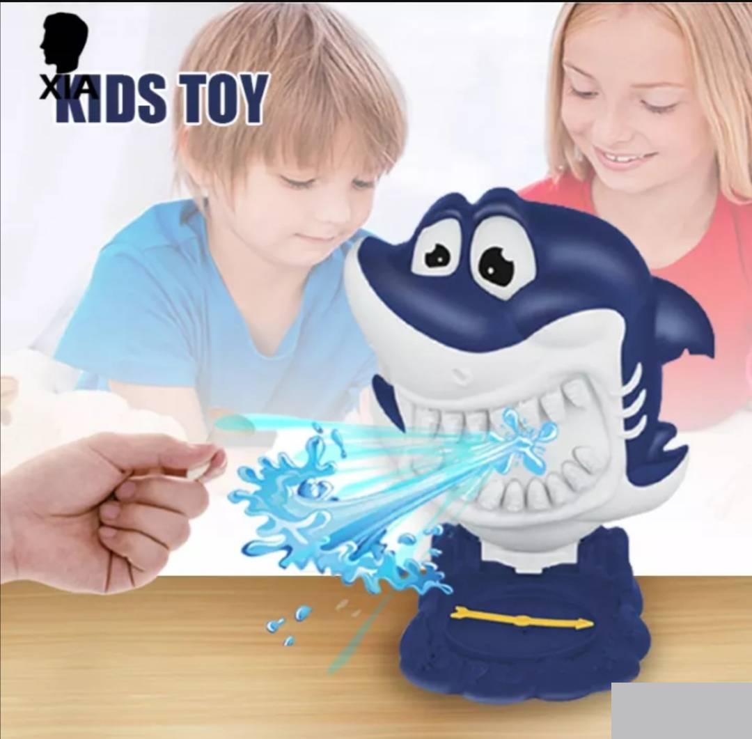 1. Jedan igrac nasumicno ubacuje zub u rupe u ustima maske ajkule. Napunite mega klip vodom, a zatim ga ubacite u komoru.