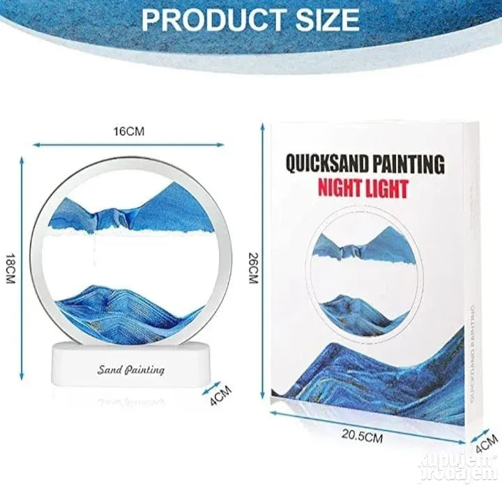 Dinamička slika peska može se slobodno rotirati, svaki put kada je okrenete, pesak počinje da se kreće i polako formira pustinje, okeane, planine. Uživaćete u padajućem pesku i različitim pejzažnim scenama koje on daje.