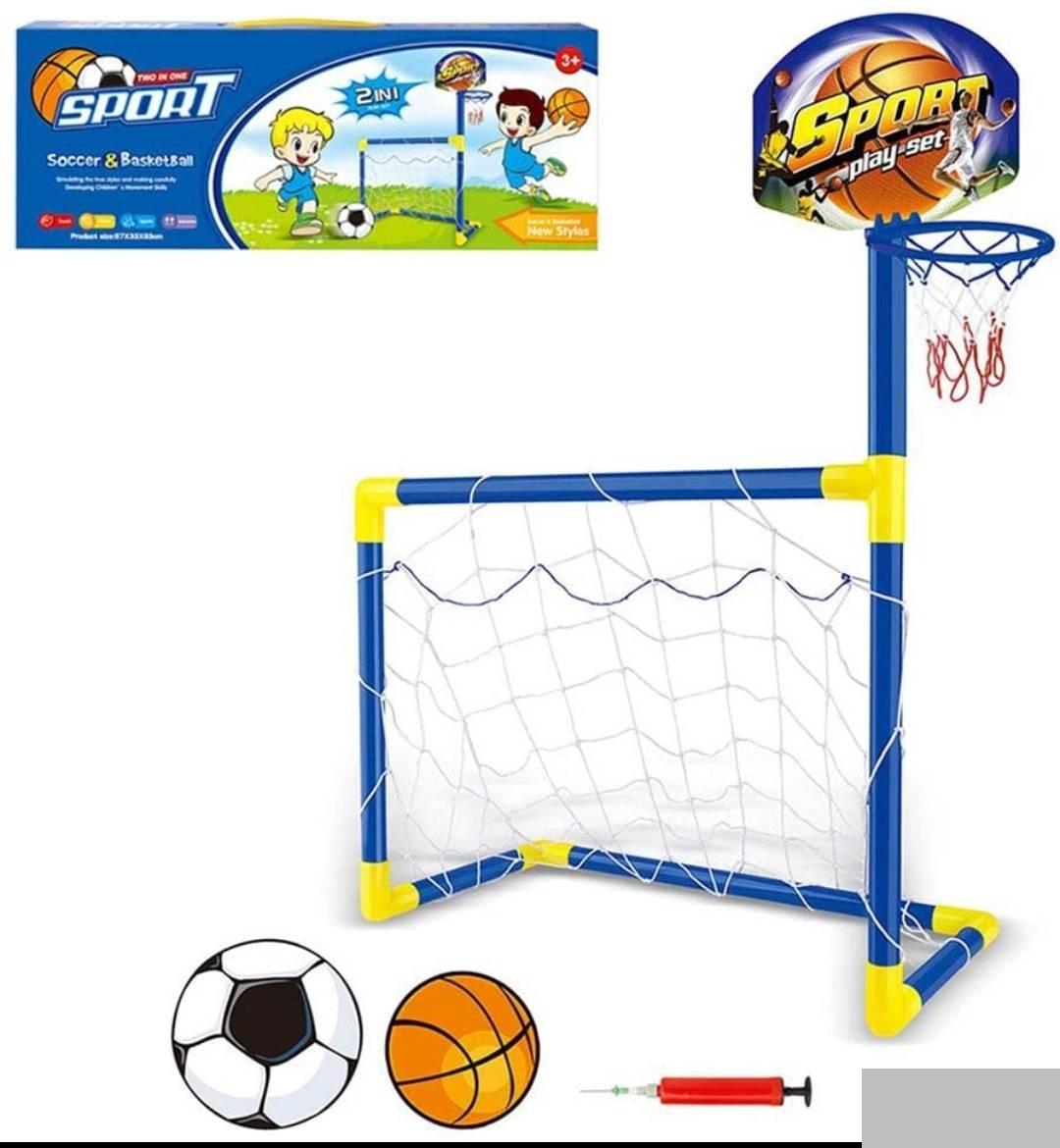 Igracka koja u sebi sadrzi loptu kojom se moze igrati kosarka i fudbal uz pomoc kosa i gola. To je sjajna igracka za decu koja se lako namesta u kuci, stanu ili dvoristu. To je komplet 2 u 1 i dete se moze igrati samo ili sa drugarima. Moze da bira izmedju dva najpopularnija sporta uz pomoc jedne igracke. Dva najpopularnija sporta kod nas košarka i fudbal za decu u jednom.
