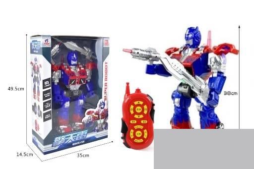 Nova generacija multifukncionalnih robota je stigla i na naše tržišteOvog robota izdvaja nevrovtna brzina pri kretanju ili okretanju od 360° Robot je uradjen po jednom od glavnih likova transformer serijala Optimusu prajmuIma nevereovatne light show efekte i prilično zanivljive voice efketeU paketu dobijate mač koji savršeno pristaje ruci robota i prilikom kretanja robot maša rukom ( mačem ) Strelice koje dobijate u pakovanju se mogu izbaciti iz samih grudi ovog multifukncijalnog robotaU paketu takodje dobijate kontroler sa zanivljivim dizajnom toki-vokia koji radi na 3 × 1.5 AA baterije ( nisu uračunate u cenu ) Robot ima svoje punjive baterije koje dobijate u setu sa robotom