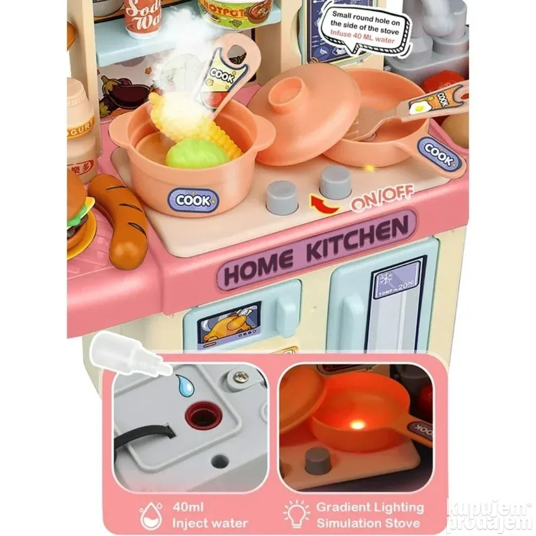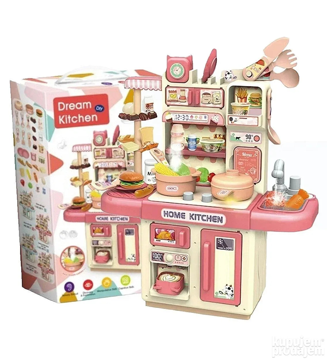 Kuhinja sa pravim efektom vode je fenomenalna kuhinja sa realnim efektima I zvukom. Igračka kuhunja ce ucinice da se Vase dete oseca kao pravi kuvar kuvajuci jela koja mu se svidjaju. Efekat pare ce dati jos realističniji osećaj pri kuvanju.