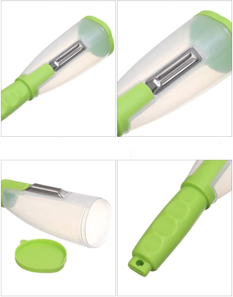 Ovaj ljuštač može da skladišti oljuštenu koru povrća i voća direktno u kontejner što čišćenje čini veoma praktičnim prilikom spremanja hrane. Ručka ima udoban dizajn i neklizajuća je tako da je držanje ljuštača nije teško. Oštrica je od nerđajućeg čelika pa je veoma izdržljiva. Lako se održava, a može se prati i u mašini za sudove.