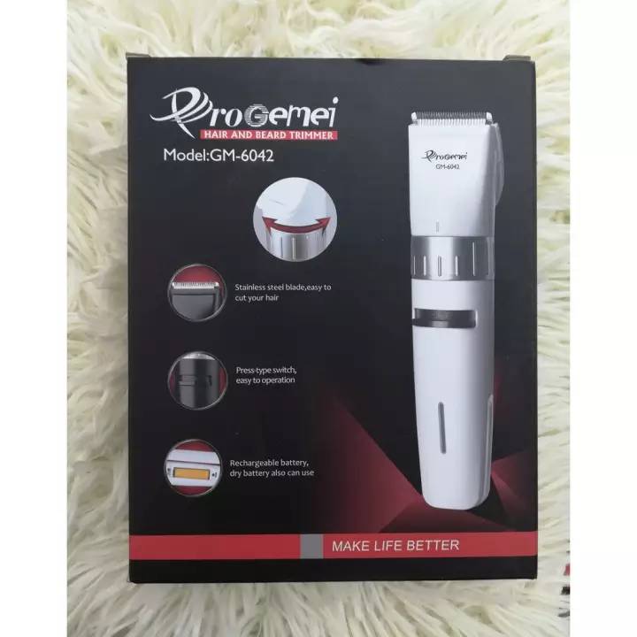 Specifikacije: Tip: kliper; materijal: plastika; lopatica od nerđajućeg čelika Motor je izrađen od legure srebra sa velikom brzinom rotacije. Snaga: 50/60 Hz, 3 V; Trajanje baterije: 40 minuta Vreme punjenja: 8 sati; Baterija: ugrađena sa indikatorom punjenja Jednostavna za upotrebu, lagana, prenosiva Veličina 16k4 cm Kompletan set: Mašina za frizuru kose GEMEI GM – 6042.
