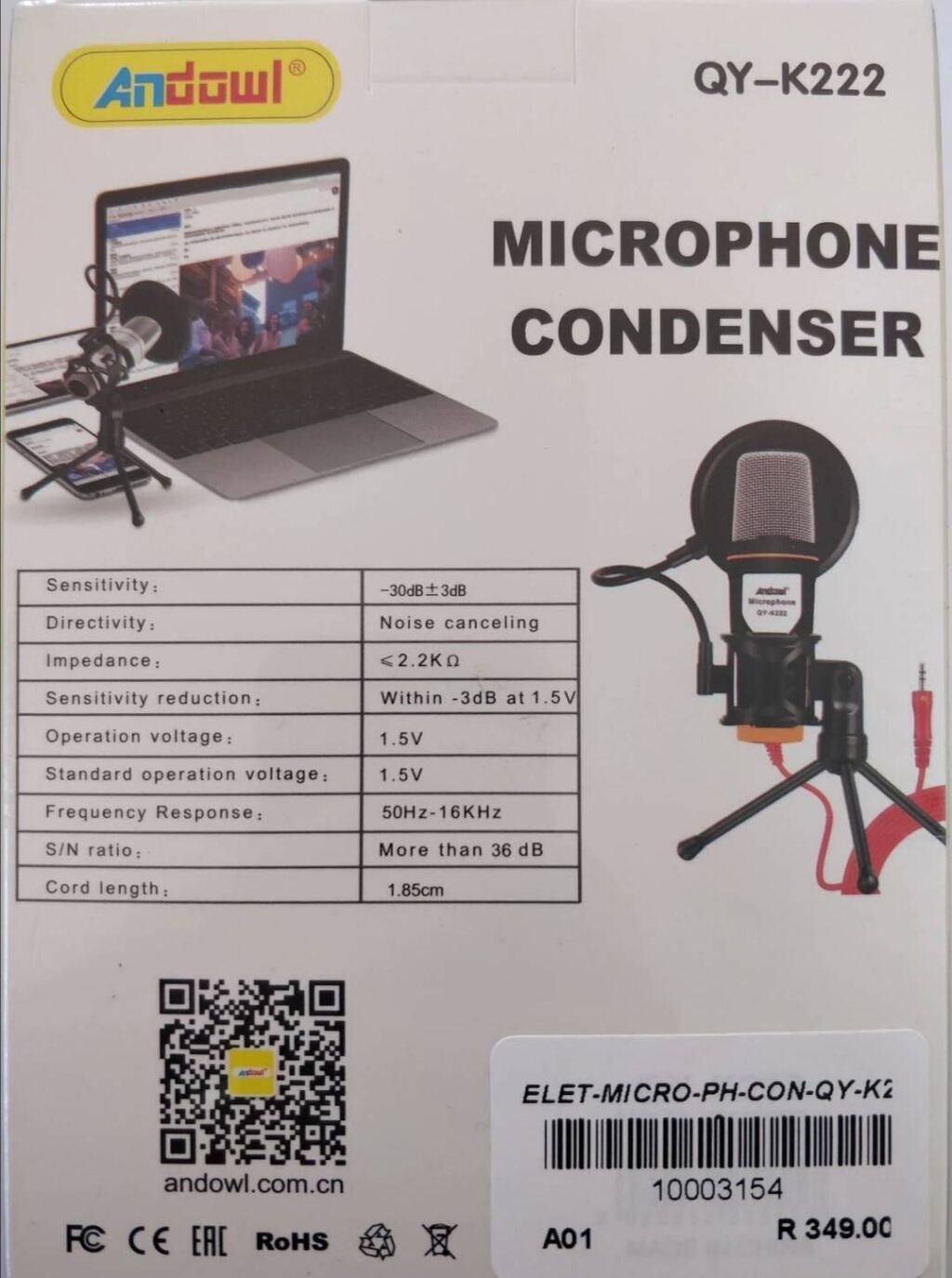 Andowl QY-K222 žični kondenzator za mikrofon sa postoljem se može koristiti za računar, laptop, tablet, Android i IOS mobilne telefone. (Mobilnom telefonu, tabletu i laptopu sa signalnim portom možda će biti potreban adapter. ) Specijalni dizajn za ćaskanje preko QQ, MSN, SKYPE i karaoke zabave. Dizajniran da minimizira pozadinsku buku i izoluje glavni izvor zvuka. Širok frekventni odziv čini da vokalne performanse zvuče jasno, prirodno i živopisno. Uključeni su držač mikrofona i kopča za jednostavno podešavanje. Prenosivi i plug-and-play. 3.5 stereo utikač odgovara većini računara.