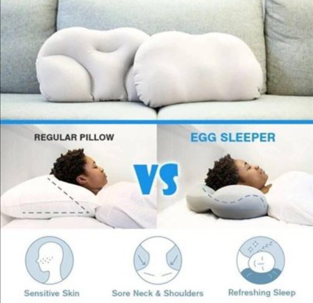 Egg Sleeper ima ergonomski dizajn koji je udoban za vašu glavu, postojano se prilagođavajući vašem obliku, bez obzira da li spavate na leđima, na boku ili spavate na trbuhu.