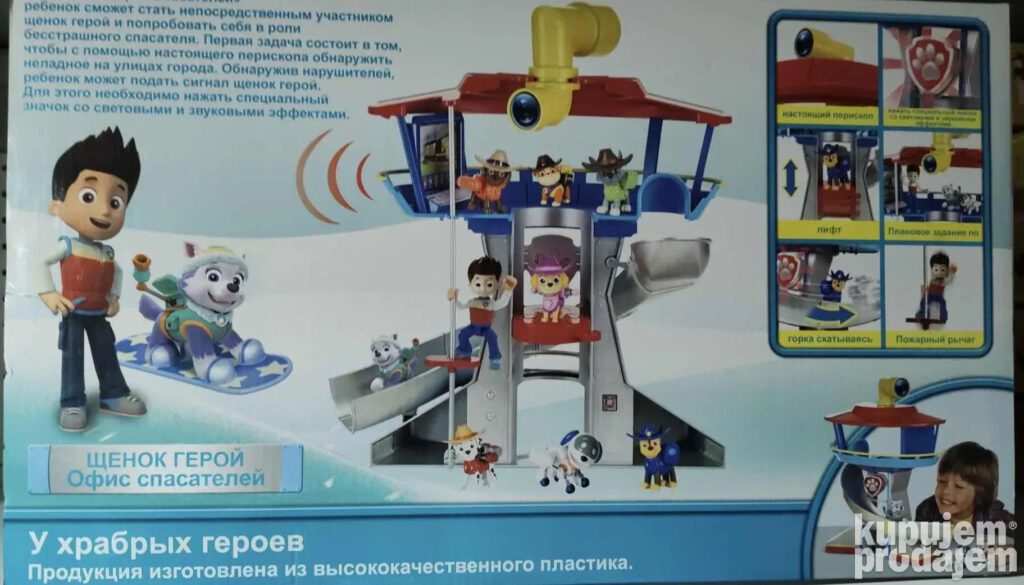 PATROLNE Sape – Osmatracnica Osmatracnica je sa pravim radnim liftom, zvukovm, spiralnim toboganom i periskopom! Avanturistički zaliv možete gledati pomoću isporučenog periskopa, koji se okreće za 360 stepeni! Radi na 3 lr44 baterije, koje su uključene