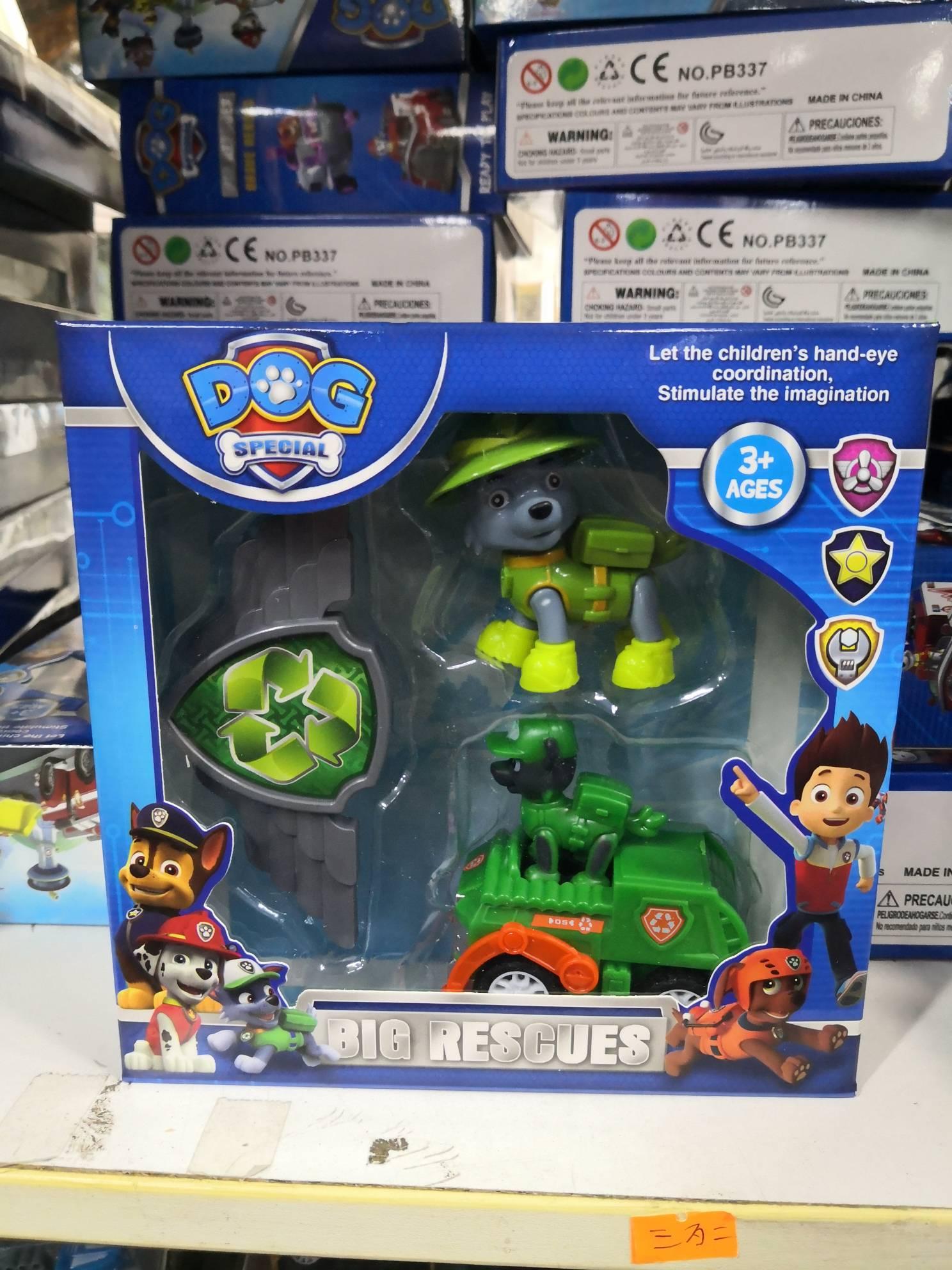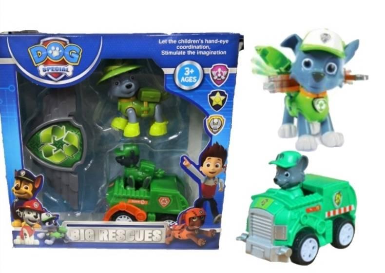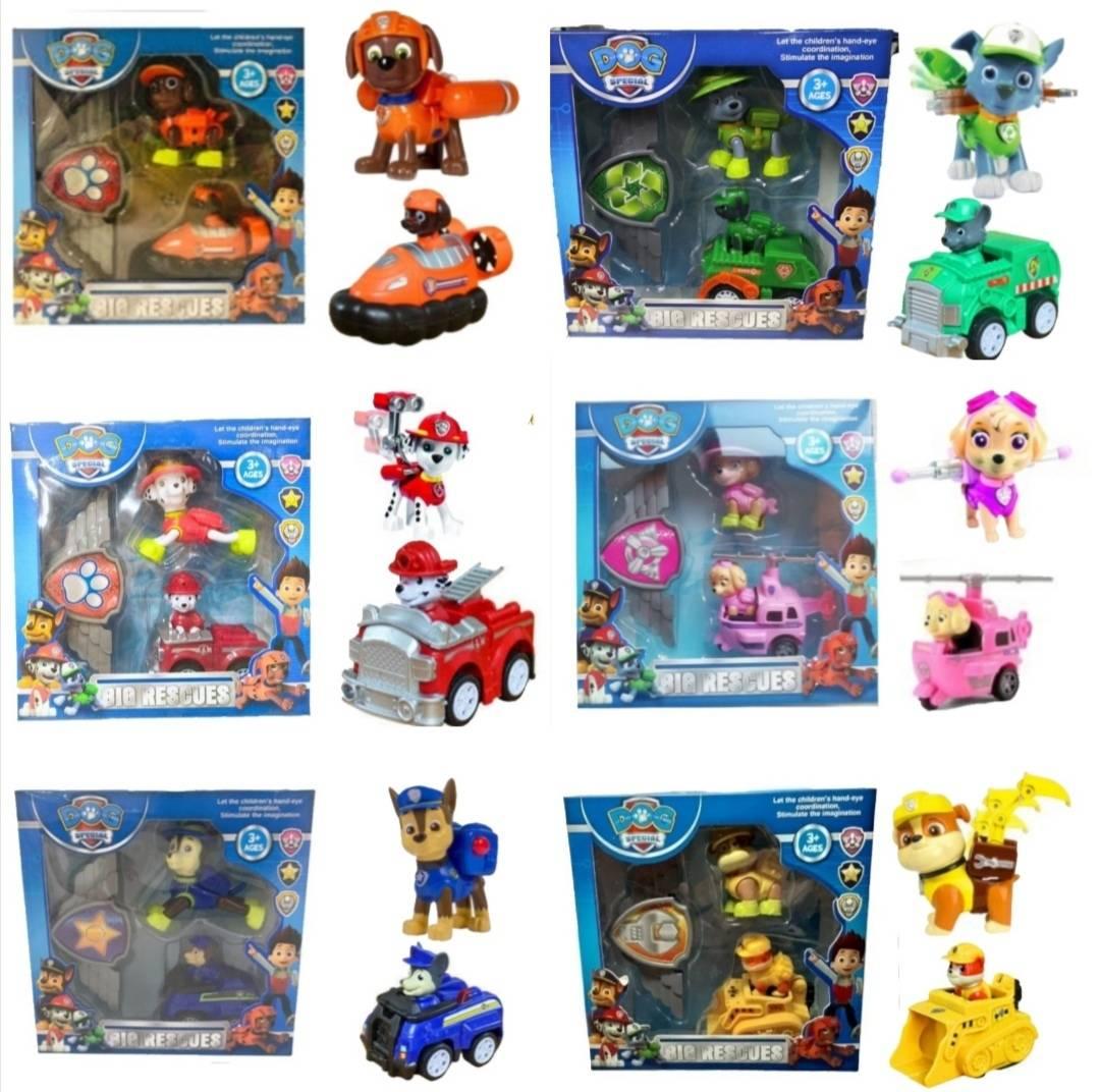 Patrolne šape ponovo spašavanju dan. Igračke su napravljene od ABS plastike. Set se sastoji od junaka sa vozilom, junak i značka. Dimezije figurica oko 8cm