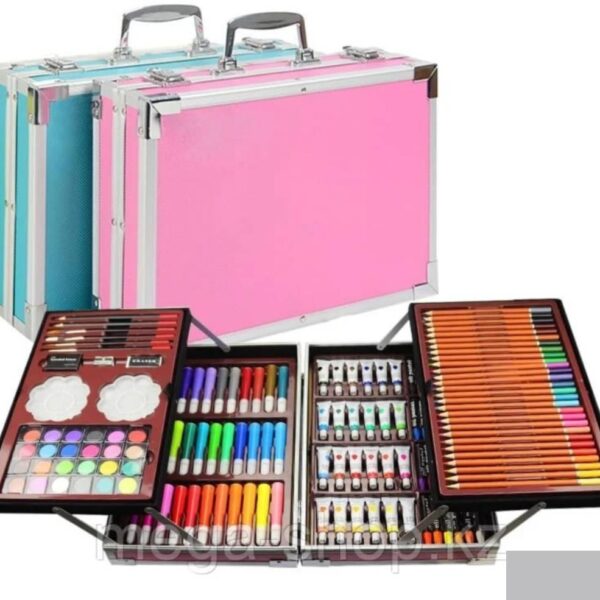 Set za crtanje – Set u metalnom koferu roze boje- Set za crtanje u roze koferu