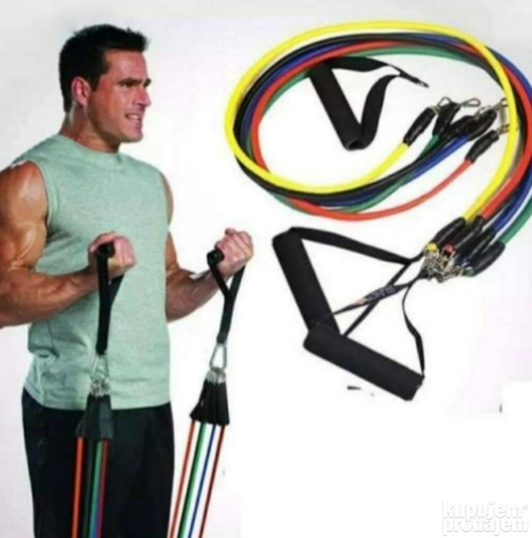 Vaš trening može biti potpun uz set od pet guma različitih opterećenja. Možete ih koristiti za vežbanje nogu, ruku, leđa i ramena, koristeći svaku gumu zasebno, ili možete nekoliko guma kombinovati kako bi ste dobili odgovarajuće opterećenje.