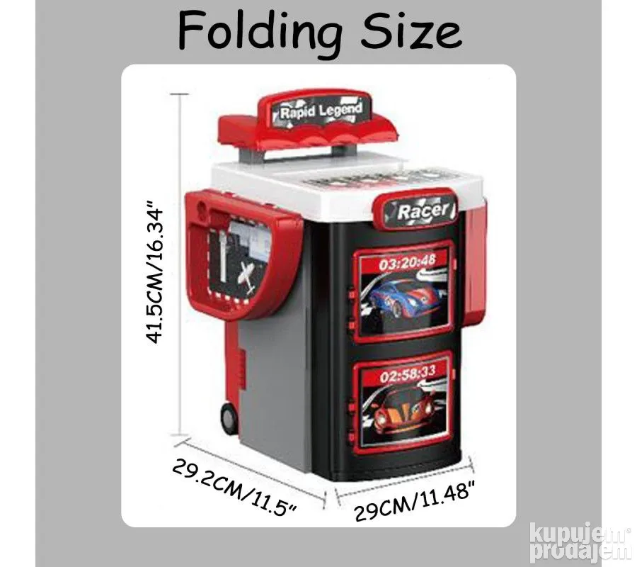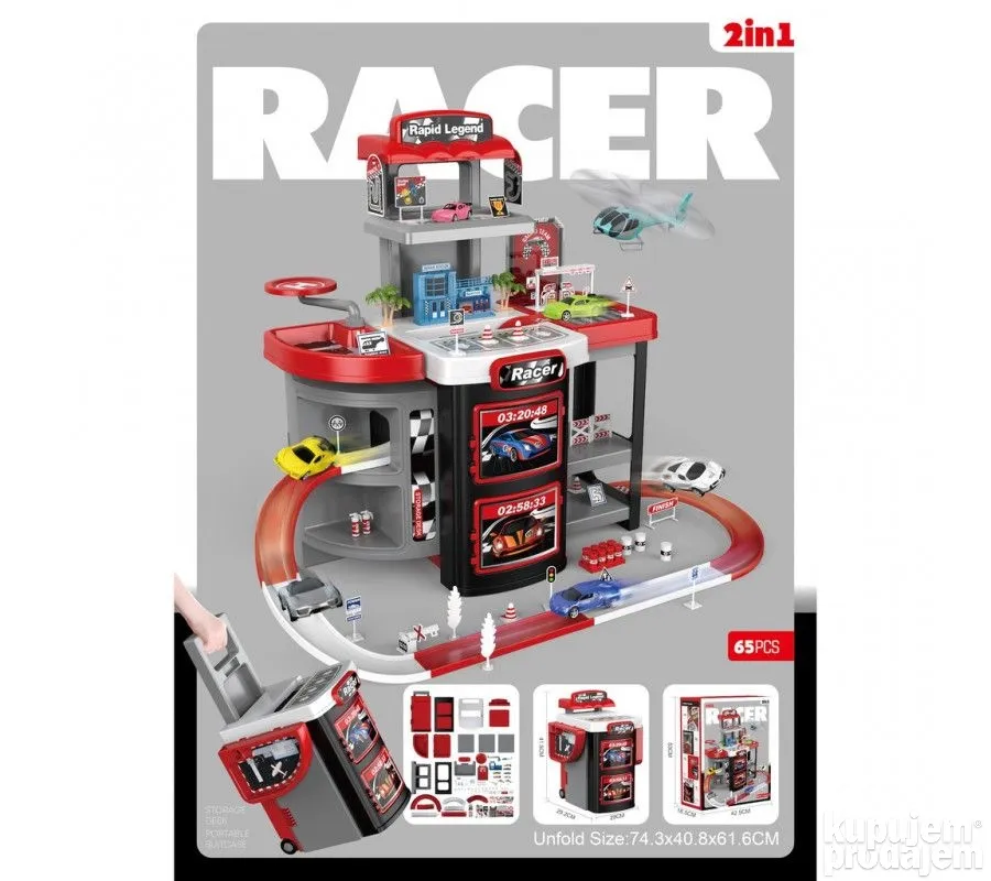 Velika trkacka staza sa auticima i parkiralistem sa sklopivim koferom ucinice igru malisana zabavnom!