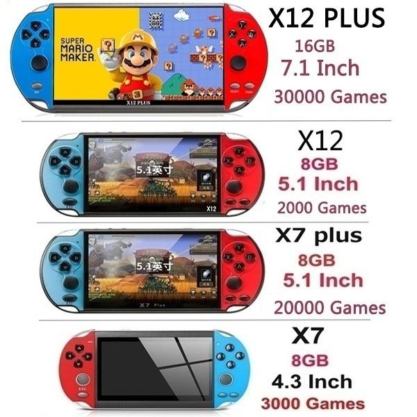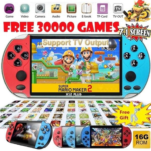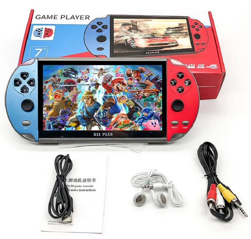 Retro video konzola player x 12 plus ima ogroman ekran od 7 inca i oko 30000 igrica, ima dosta starih popularnih igara kao sto su: Super mario bros, Contra, Dr. mario, turtles, adventure island, sonik, kage, ninja gaiden 2, robocop, spiderman, mortal kombat, tank battle, aladin 3, bomber man, chess, donkey kong 1, 2, 3, golf, balon, ninja kornjace, formula 1…. i mnoge druge